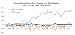 The result was a ground parcel CPP that was driven to record levels, setting the stage for another projected record in Q1 2026. This shift shows that carriers are overhauling their pricing strategy. Instead of relying solely on base rate increases, carriers are: