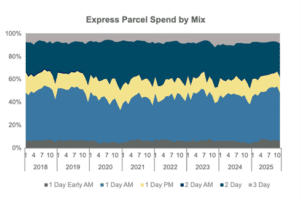 According to the Freight Index, residential delivery mix, oversized packages and service-level shifts all significantly influence CPP. In Q4 2025, seasonal increases in residential shipments amplified the impact of surcharges, while changes in service mix — such as greater use of deferred services — hid some of the base-rate increases but didn’t offset accessorial growth.
