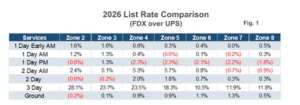 Although FedEx and UPS generally continue marching in lockstep with base rate structures, their surcharge and rating approaches are just different enough to create meaningful cost divergence based on shipper profile.