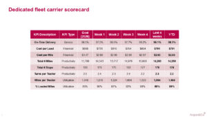Carrier scorecards are used by many shippers to drive visibility, accountability and performance with their dedicated fleet carrier partners. Based on the mission of the fleet, shippers and carriers align and agree on baseline KPIs during the contract negotiation and onboarding process.